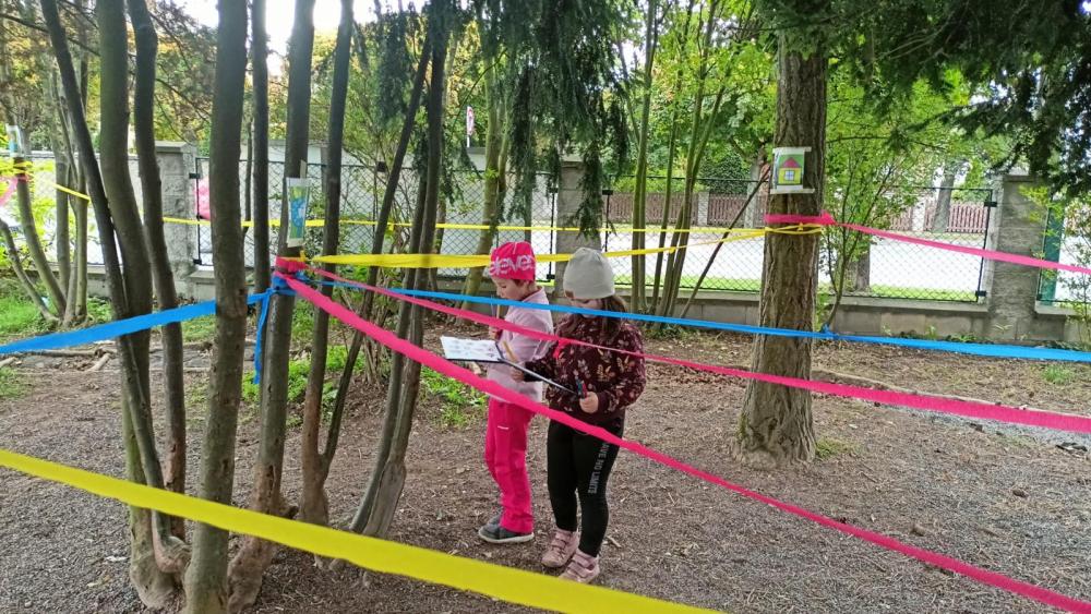 Prvňáčci se vydali na celé dopoledne učit ven. Tvořili písmena z přírodního materiálu, objevovali barevné cesty v prostředí Dětský park a na závěr prozkoumávali město Dobříš. Zakončili tak měsíc výuky, kdy se učili orientovat ve škole i jejím okolí. Moc jsme si výuku užili.